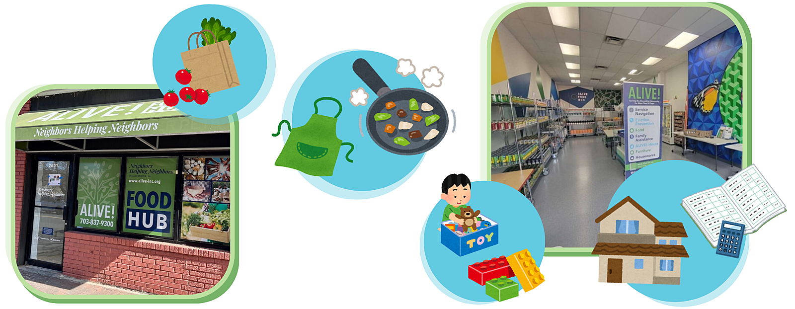 Founded in 1969, ALIVE! is the oldest and largest nonprofit serving Alexandrians facing food and housing insecurity. With support from 50 interfaith congregations, thousands of volunteers, and caring neighbors like you, ALIVE! helps more than 20,000 people each month access groceries, financial assistance, and other essential support.
