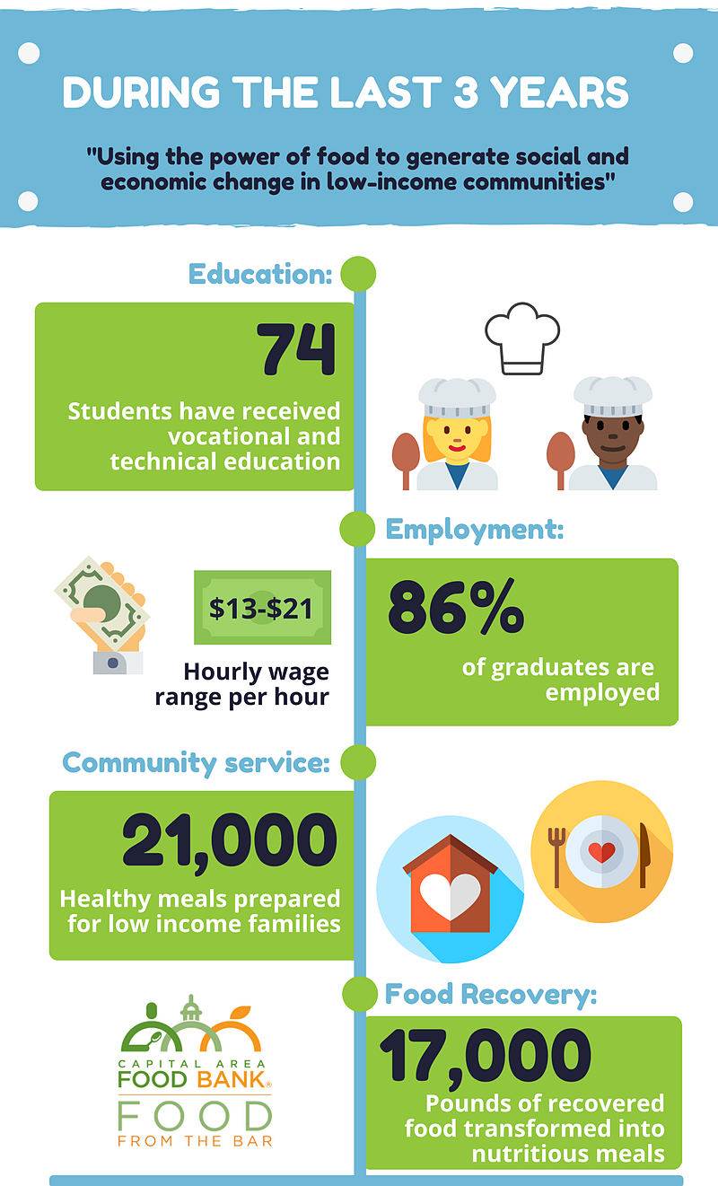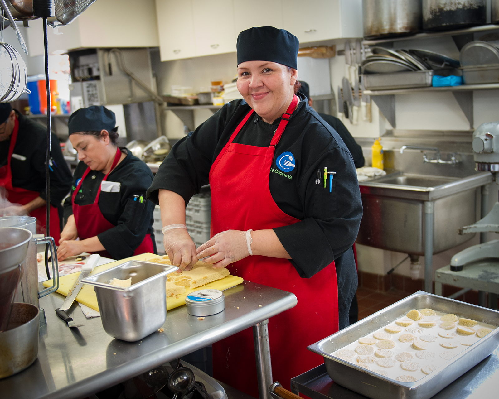 La Cocina VA has developed a broad network of partners in the food industry. Through Karina’s placements for on-the-job mentoring and an internship experience, she was connected to the Hyatt Regency. She now works in Hyatt’s restaurant in DC as a Second Cook. She’s making $22/hr, with health insurance for her family, and is on her way to advancing her career in the culinary arts.