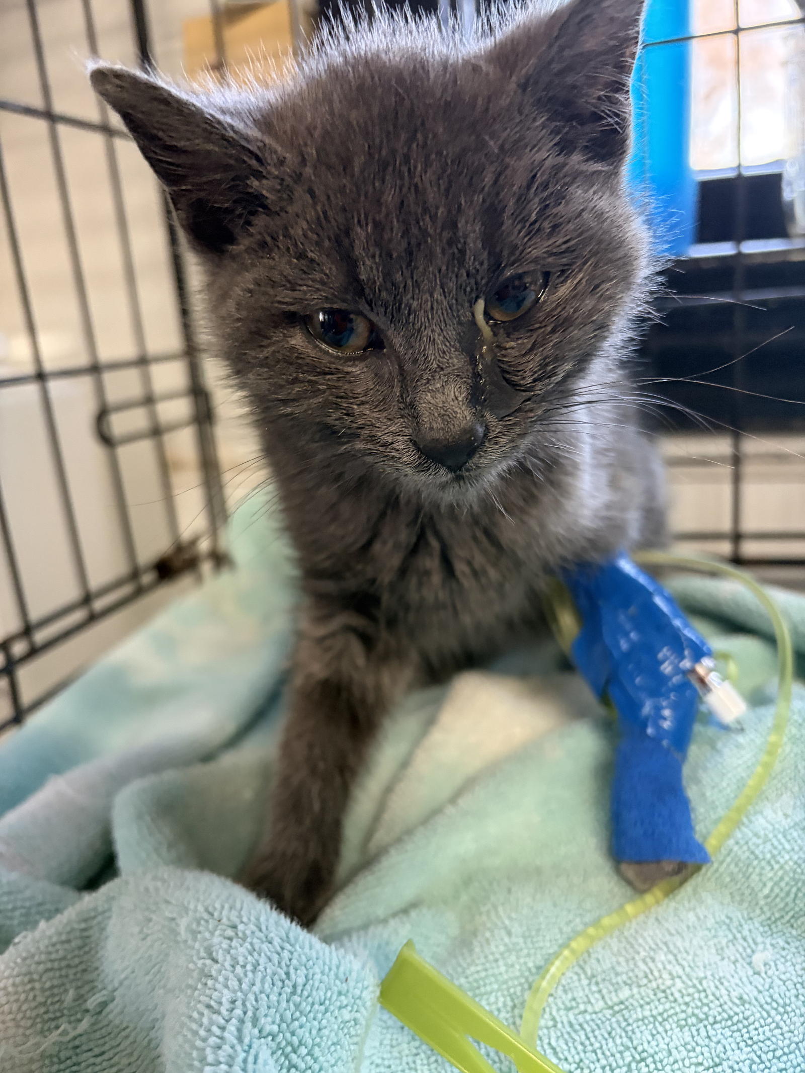 His caregiver asked us to take him so he could get the care he needs. He hasn't been eating and is having diarrhea. Despite the supportive care we can provide, he's not gaining any weight. He will need an IV to make sure stays hydrated and receives nutrients to keep his body going.